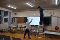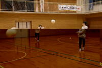 赤チームと青チーム、先生チームに分かれて、前半は給食室、後半は体育館でのレクリエーションでした