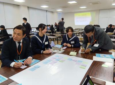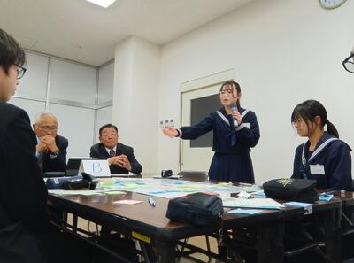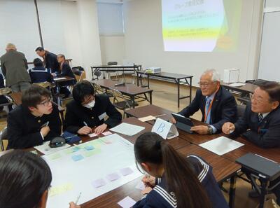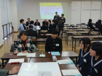 2月18日(水)に人吉市保健センターで「人吉市議会議員と高校生との意見交換会」が行われました。球磨工業高校生と一緒に本校からは1・2年生併せて14人が参加しました。