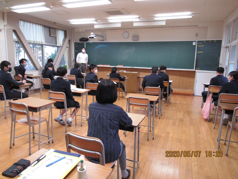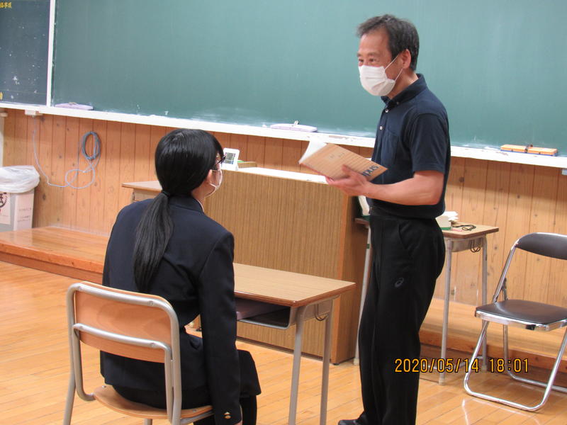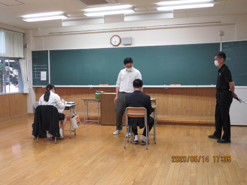 今日の登校日は、来週から段階的に始まる授業についての説明がありました。いよいよ6月1日からの学校再開に向けた準備期間が始まります。本日は、教科担当者面談(質問対応)が各教室で行われました。生徒は、予め家庭学習課題の中でわからないところを抽出し、フォームズを使ってどの教科の質問をするかを登録していました。そして実際、教科担当者のところに質問に行きました。先生方も、やっと自分の教科を教えられると張り切っていました。