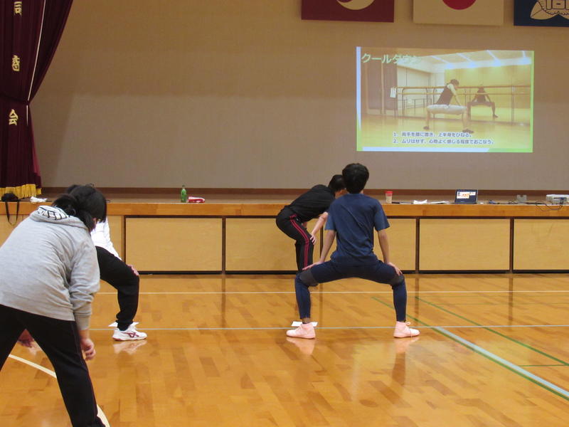 今年度初の体育の授業でした。外出自粛の影響で、体力低下が見られるので、その回復のプログラムを動画を見ながらやりました。先生方も複数名参加し、日頃の運動不足の解消をねらってサーキットトレーニングに参加しました・・・、ところが、筋肉痛で翌朝痛みを訴える先生がいました。でもストレッチは、日頃固まっている部分を伸ばすことができて大変気持ちよかったです。終了後は、みんな気持ちの良い汗と笑顔が出ていました。
