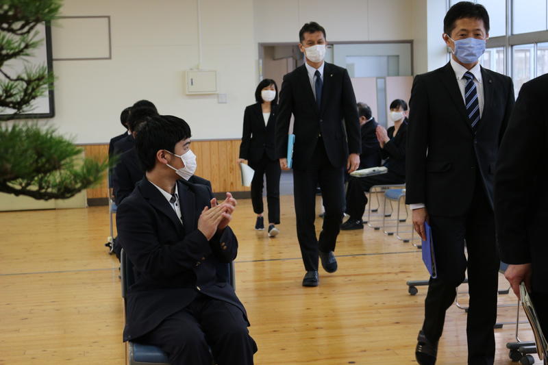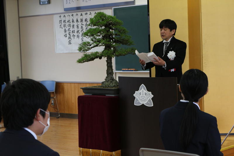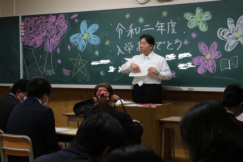 4月9日(木)に入学式がありました。コロナウイルス感染症対策でマスク着用で生徒・保護者、そして職員のみの式でしたが、明るく温かい雰囲気で行われました。初めてのロングホームルームでは、担任の先生、副担任の先生から歓迎の挨拶がありました。
