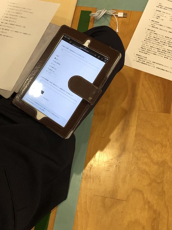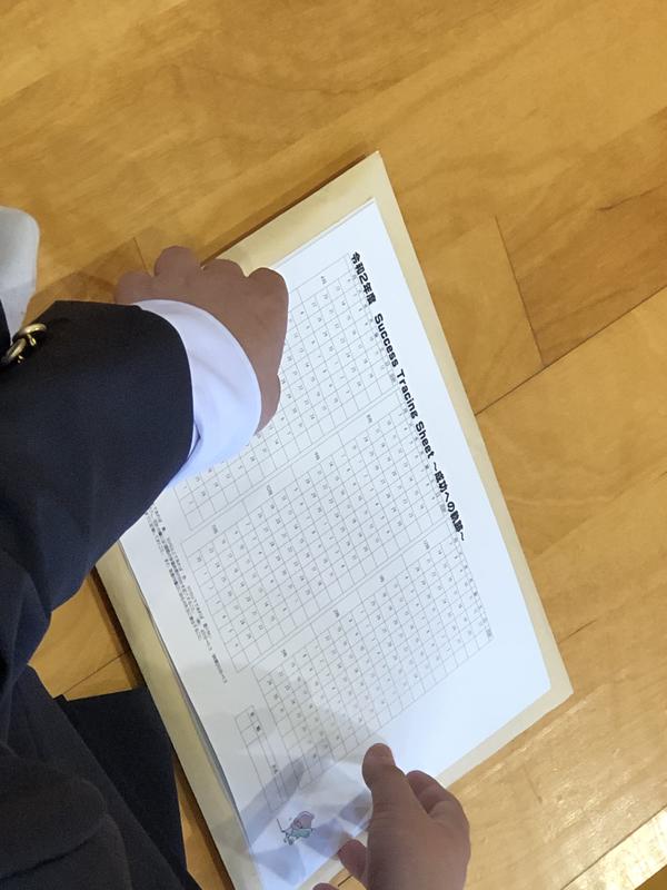 4月16日(木)は臨時休校中の登校日でした。体育館での合同SHRでは、教頭からの挨拶(新学期が始まってもなかなかみんなに会えない寂しさ、自分のためだけでなく大切な人たちのために感染しない行動を心がけること、そしてこういうときだからこそ、自分たちが試されているのだと考えて、「勉強力」を付けよう・・・)、1週間分の課題配付(同時に学習の記録を付けるSuccess tracing sheetも)、個人写真撮影、そして担任面談が行われました。タブレットの貸与も行われ、Formsでの健康観察、学習時間調査の説明がありました。