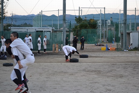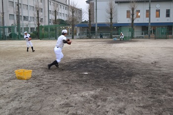 今週は2年生のみの練習となります。従って、今日は個人練習が中心となりました。守備に中心を置く者、打撃に中心を置く者、筋力トレーニング中心に練習を組み立てる者など、自らの課題に向けて練習に取り組みました。寒風が吹く中、今日も気持ちを込めて練習に取り組んでいます。