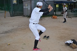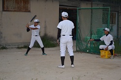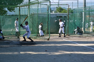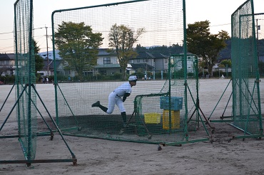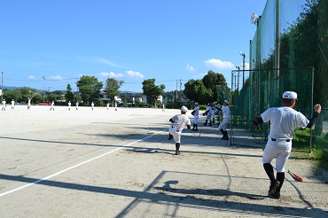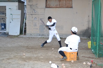 今日は、練習試合に出かけている班と学校で練習する班の2つに分かれての活動です。学校では、汗ばむほどの日差しの下で、打撃練習を中心に一生懸命に取り組んでいます。自らの課題を意識しながら、打撃フォームのチェックをしている選手が多く目につきました。練習も主体的な取組が大事です。