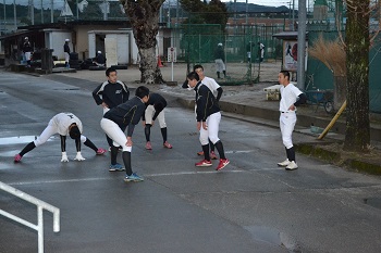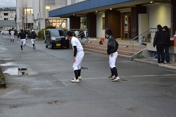 〈野球部〉冬練、気合い入れて頑張ってます。