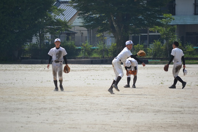 〈野球部〉まだまだ、基礎練習も気合い入れてやってます。