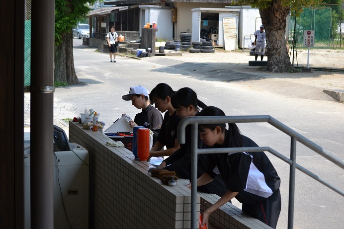 朝6時の起床後、日頃からお世話になっているくま川鉄道相良藩願成寺駅の掃除を行いました。人吉名物の霧が既に漂っていました。終了後、朝練としてバットスイング(素振り)を行いました。セミナーハウスでは、既にマネージャーさん達は、朝食に加えて、部員のお昼の弁当づくりが終わろうとしていました。しっかり食べて、まずは午前中の課外授業、頑張ります。