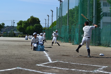 今日は、練習試合に出かけている班と学校で練習する班の2つに分かれての活動です。学校では、汗ばむほどの日差しの下で、打撃練習を中心に一生懸命に取り組んでいます。自らの課題を意識しながら、打撃フォームのチェックをしている選手が多く目につきました。練習も主体的な取組が大事です。