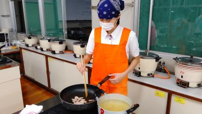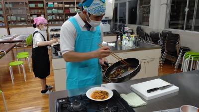 「地域の特産物を使った料理をつくろう!(地域理解)」ということで、「きくらげ」を使ってナポリタンを作りました。家では料理しません!!と言ってたのに...みんな手際よく材料を切って、炒めて、調味して。美味しそうなナポリタンが出来上がりました!