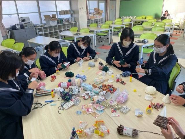 ESSでは、毛糸やビーズを使って、それぞれ思い思いにクリスマスツリーを作りました!