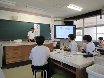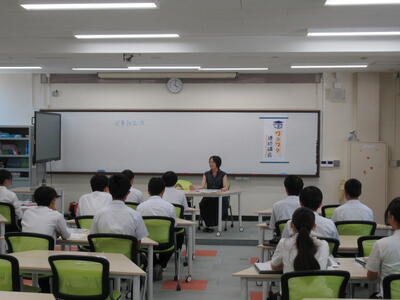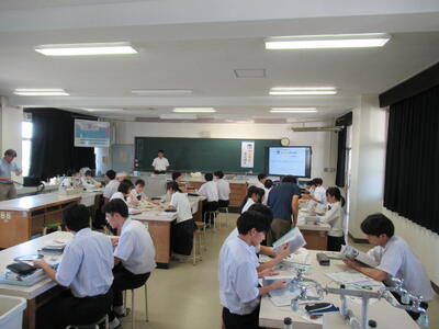 専門分野の話だけでなく、研究者になられたきっかけや博士課程までの道のりの話といった経験談など、生徒にとってはとても刺激的なお話もいただくことができました。教室を出て行くときの生徒の目はとてもキラキラしていました。