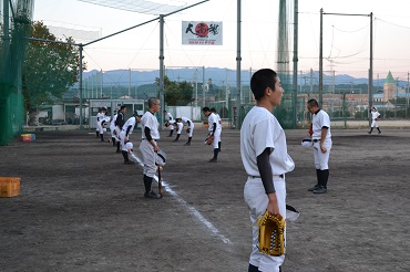 今日も放課後、生徒達は一生懸命練習に励んでいます。夕方5時半頃には真っ暗になります。その後は、グラウンドの照明をつけ、午後7時まで練習します。初心に返って、こつこつ基礎基本の反復練習に取り組みます。今の努力が、春に結果になってあらわれます。