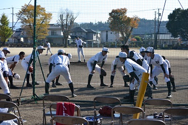 〈野球部〉今日は、熊本西高校と練習試合です。