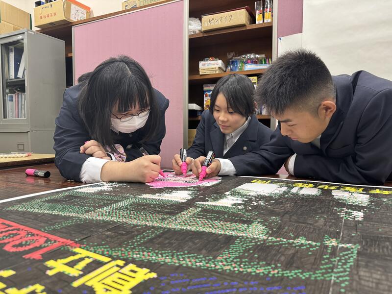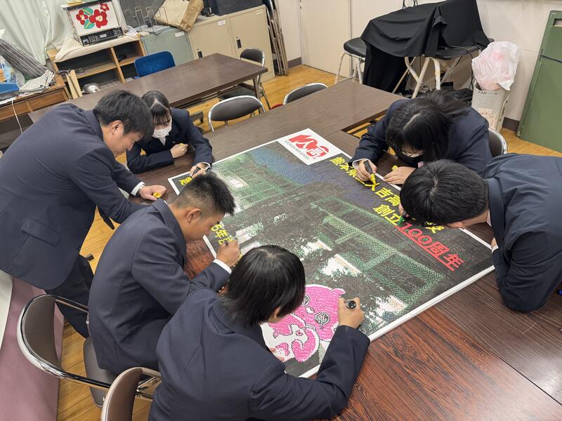 今週末に行われる100周年記念式典で、モザイクアートも含めた様々な展示物が展示されますので、生徒たちの頑張りの様子を、みなさんどうぞ、ご覧ください