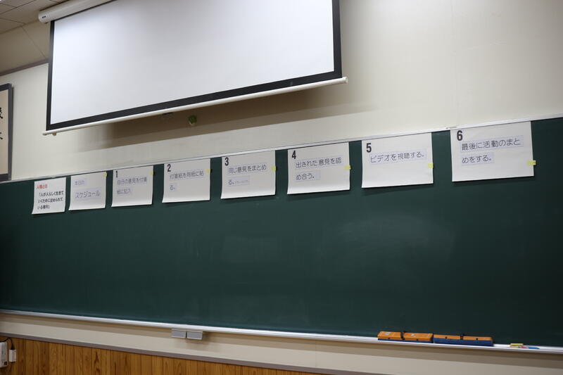 班のメンバーの意見を否定せず認め合い、さらに「似ている意見」ごとにグループ分けし、〇で囲みます。