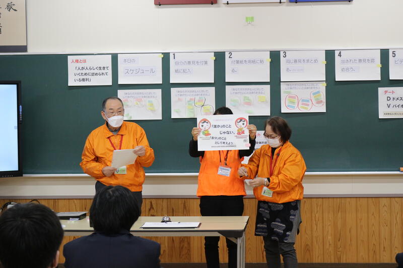 人吉人権擁護委員協議会より6名の方にお越しいただき、「デートDV」についてご講話いただきました。