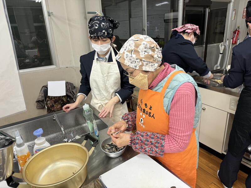 今回の目的は、郷土料理を知り技術を習得することはもちろん、地産地消を目指し、ささげ、栗、焼き豆腐、いりこは地元の食材を使用しました