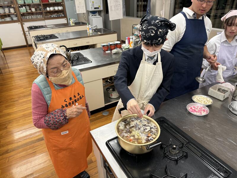くまもとふるさと「食の名人」の牧山様、鶴田様を講師にお招きし、人吉・球磨の郷土料理について知りながら、技術を習得しました。