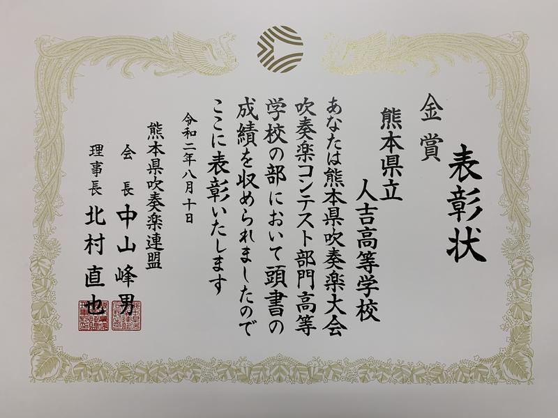8月10日(月)・11日(火)に実施されました、熊本県吹奏楽連盟特別事業「熊本県吹奏楽大会」吹奏楽コンテスト部門で『金賞』を受賞いたしました!