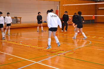 1月19日(土)~20日(日)にかけて県下高等学校バレーボール大会が行われます。しかし、今日も基本的にはいつも通りの練習です。ランニングパスやラダートレーニングなどの基礎トレーニングを1時間程度みっちり行います。その後ボールを使い、パス、サーブ、スパイクの練習、その後チーム練習となります。最終的な目標は、高校総体でベスト8に進出することです。応援して頂いている方への感謝の気持ちを忘れずに頑張ります。