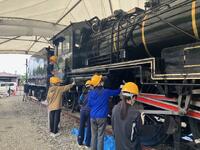講師の先生や人吉市役所の職員の方に清掃方法を教えていただきながら、SL人吉を磨きました。