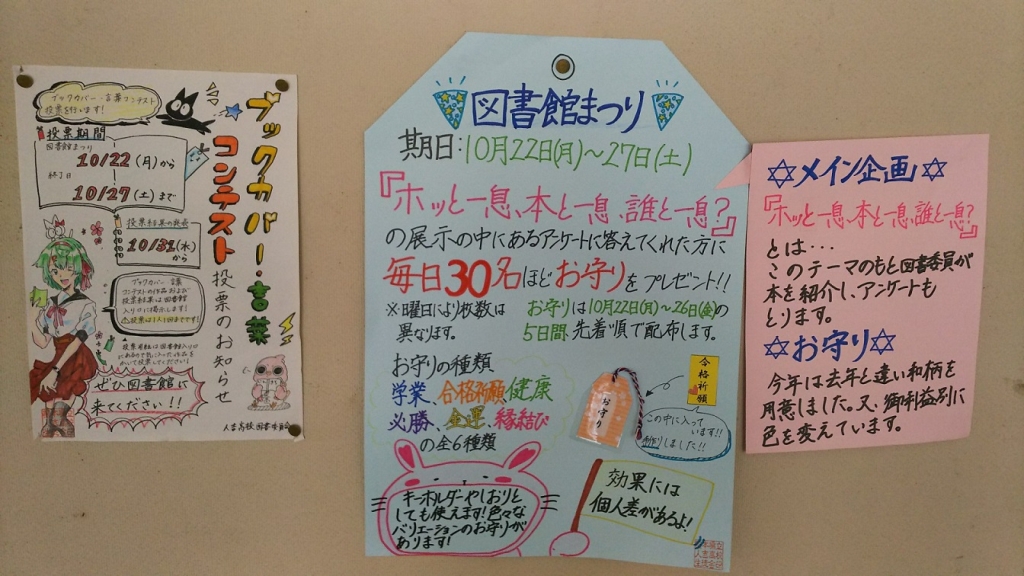 図書委員が5つのグループに分かれて、9月から1ヶ月半かけて、それぞれの班で企画を話し合い、試行錯誤しながら準備を重ねてきてました。