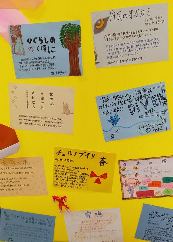 図書委員会では(展示)「図書委員のおすすめの本」のPOP展示を行いました。