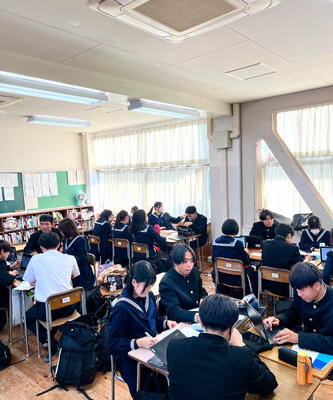 個人研究を研究計画書としてまとめたものをグループ内で発表し、お互いに評価し合いました。お互いに質問したりしたことで自分の研究に深まりを見いだすことが出来ました。3学期は2年時に向けて分野別のテーマ研究に入っていきます。