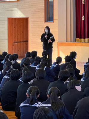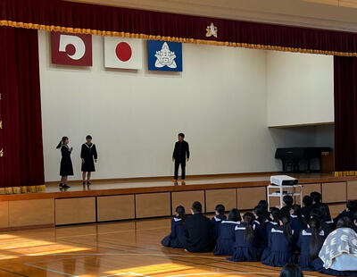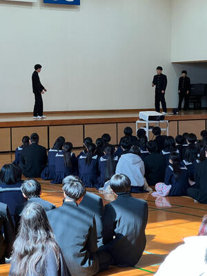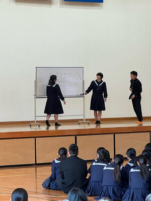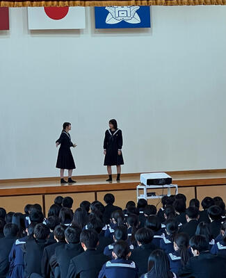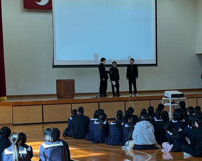1月に行われるスキットコンテスト県大会に向けて各クラスの代表1チームによる発表会が行われました。選考された上位2チームが県大会の出場権を獲得します。