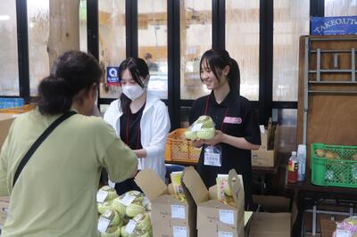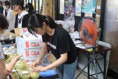 8月10日(日)~8月11日(月)の2日間、本校生徒11名がくらんど市梨祭りのボランティアに参加しました。南稜高校の生徒ともに梨や新米の販売、配送手続きなどを一生懸命行っていました。2日目は荒天で来客が少なかったため、SNSでの宣伝による集客を狙うなど、工夫を凝らして梨を販売する姿が見られました。貴重な経験をさせていただき、ありがとうございました。