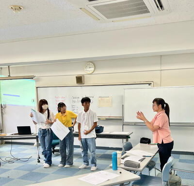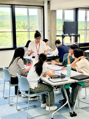 国立阿蘇青少年交流の家にて3泊4日の英語研修を行いました。講師の先生を2名招待して3日間を通し、ディスカッション・クリティカルシンキング・ロジカルシンキング・プレゼンテーションなどの技術について演習を交えながら実践しました。研修の後半にはSGDsプロジェクトと題して、SDGsの中から1つの目標を取り上げ、それについて身近な課題に対してプレゼンテーションを準備し、全体で発表会を行いました。研修の最後には講師の2名より修了証が授与されました。この研修に際して、秀麗会・同窓会・繊月酒造様より多くの助成金を頂きましたことを御礼申し上げます。今後は報告書の作成・文化祭でのプレゼンテーションの準備を行っていきます。