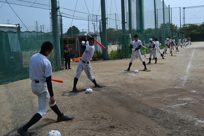 午前8時から12時まで練習が行われています。ゲームノック、フリー打撃、その後、守備位置ごとのノックが行われました。また、ハンマーを使ったトレーニングも実施され、部員たちは、歯を食いしばり、汗を流しながら黙々と取り組んでいます。素振りの後、最後は、自主練習の時間がとられ、個々の課題に向き合っていました。暑い中、女子マネージャーたちも選手の体調管理に気を配ったり、洗い物をしたり、頑張っています。