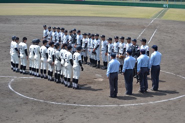 本日、川上哲治記念野球場で、城南大会の1回戦(対八代農業高校)を戦いました。人吉高校は、3人の投手が相手打線を抑え、5回コールドゲーム、22対1で勝つことができました。明日4月14日(日)は、2回戦(対御船高校)が、県営八代野球場で、9時30分から行われます。よろしければ、応援にお越しください。