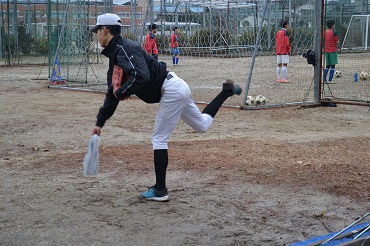 今日の練習は、基礎トレーニングを行いつつ、バッティング練習も行われていました。アップでは、グラウンドコートを着ていましたが、その後は、薄手のアンダーシャツにユニフォーム姿。見ているこちらが寒くなる程の天候でしたが、生徒はそういうそぶりを全く見せずに、黙々と練習に励んでいました。ちょうど大寒の頃ではありますが、寒さに負けず、一生懸命に練習する姿に、春の大会での上位進出が期待できると思いました。
