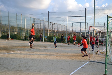 今日も、本校のグラウンド北東側にあるハンドボールコートで練習しています。今日はストレッチ、ダッシュ、キャッチボール等の基礎練習、2対1、3対2などの実戦練習を行いました。冬時間になり練習時間が短くなっていますが、密度の濃い練習で補いたいです。