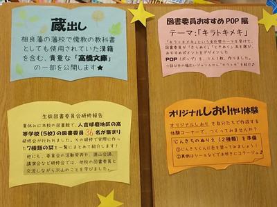 ふだん書庫に保管してある「高橋文庫」から、藩校時代に使っていた漢籍の書物の展示や、図書委員が文化祭のテーマ「キラトキメキ」をイメージして選んだ本をPOPで紹介します!イベント部門として