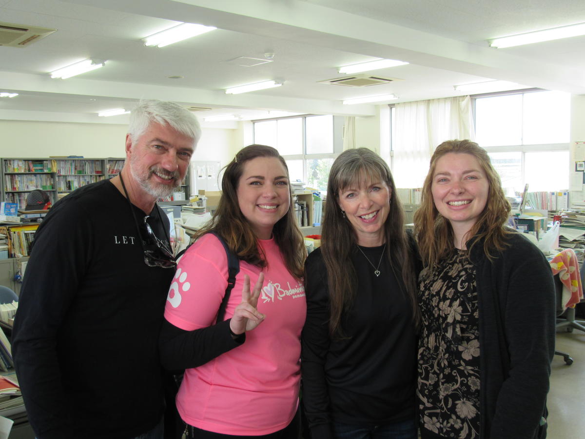 ラーリー先生のステキなご家族がいらっしゃいました。生徒がいたら大喜びでしたが、残念ながら休校中で対面できませんでした。ラーリー先生同様に、みなさん、すばらしい笑顔の持ち主でした。職員室が、ぱっと明るく華やかになりました。ほんとうは、ゆっくりお話ししたかったのですが、、、。