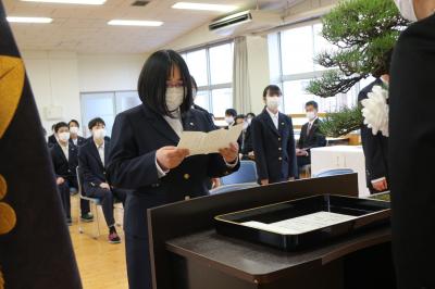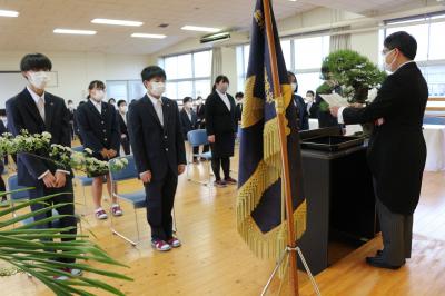 4月9日、入学式が行われ、7名の新入生を迎えました。前田校長先生は式辞で「本校の綱領「礼節」「勤労」「進取」の精神を体現できるよう、自らを磨き、鍛え、高い志をもって本校生活を有意義に過ごし、これからの「未来の創り手」として活躍できる力を身につけてほしい。」と述べられました。新入生を代表して、西さんが宣誓を行いました。式後、新入生保護者の方々の秀麗会(保護者会)入会式が行われました。
