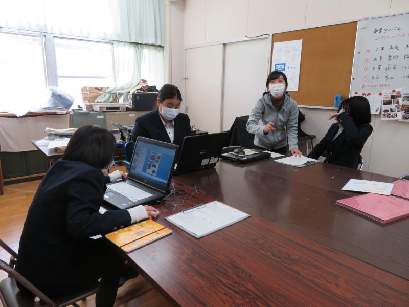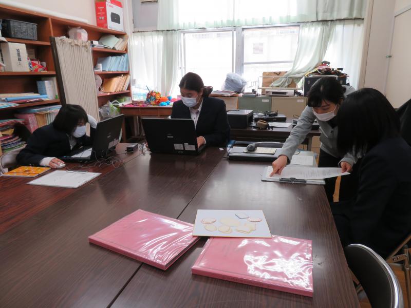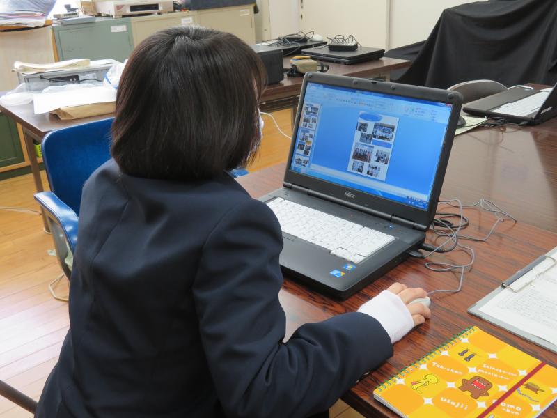 生徒会で協力して、卒業する先輩達への卒業アルバム作りをしています。心を込めて、先輩方が喜んでくれるように!