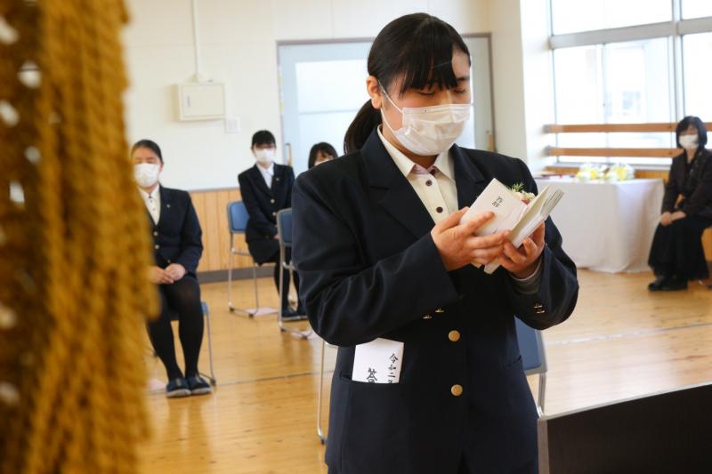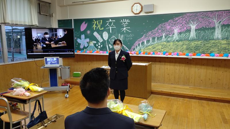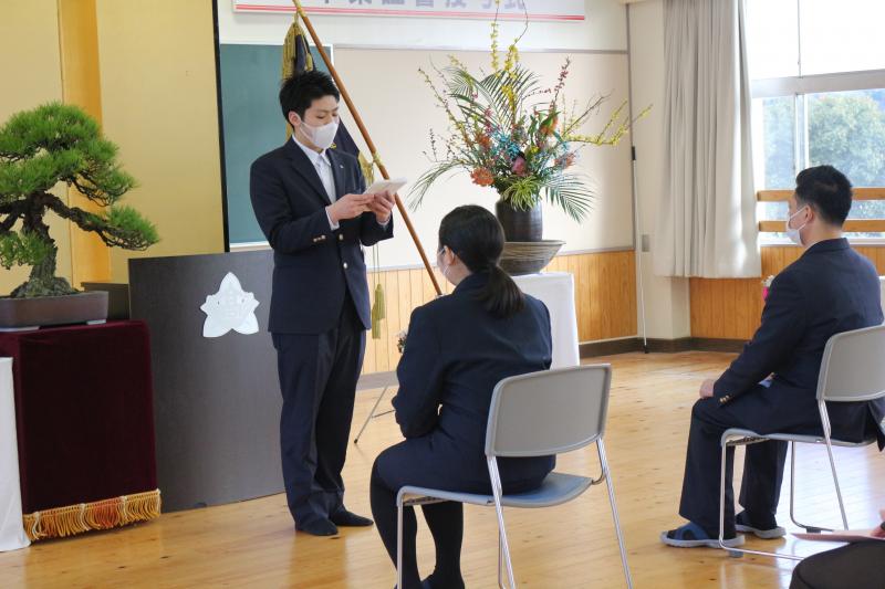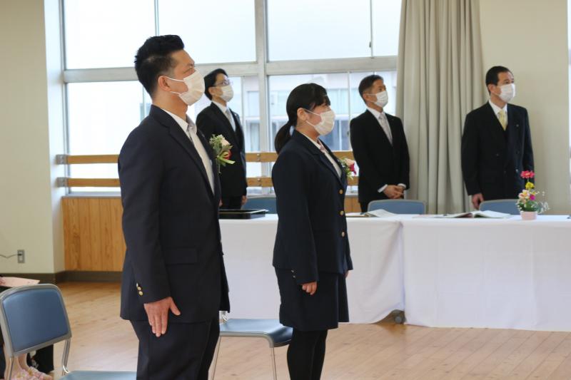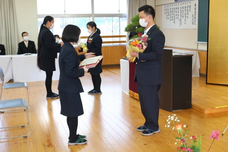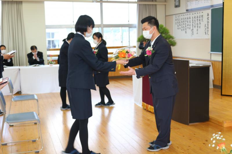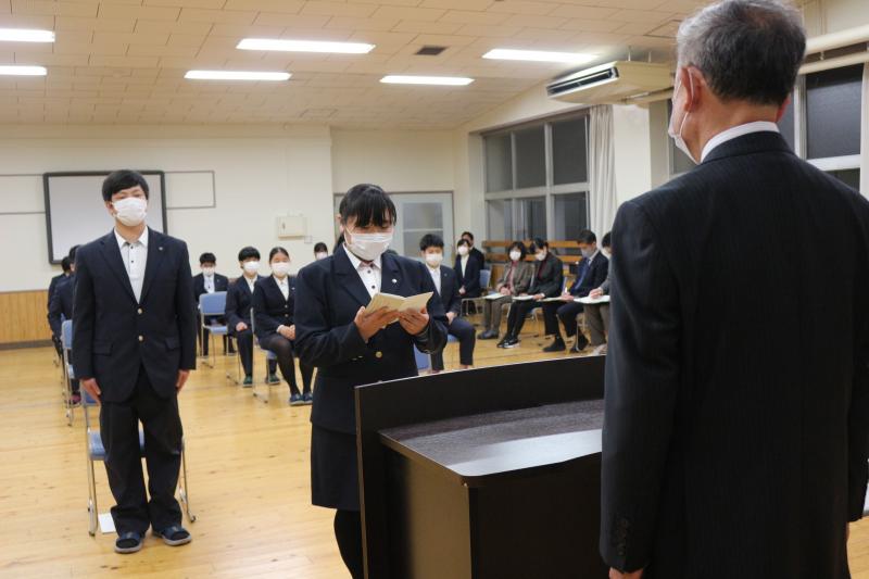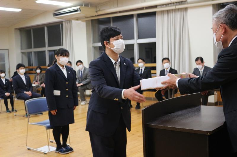第72回人吉高校定時制課程卒業証書授与式が本校視聴覚教室で行われました。4年生のジャイレック・クリッサターくん、そして西朝華音さんが光永校長から証書を授与されました。コロナ禍のため来賓なしで行われましたが、感動的な式となり、職員・保護者、在校生みんなで二人の卒業を祝福しました。二人とも4年間、皆勤で登校し、特別皆勤賞を受賞しました。定時制の卒業式は、格別です。