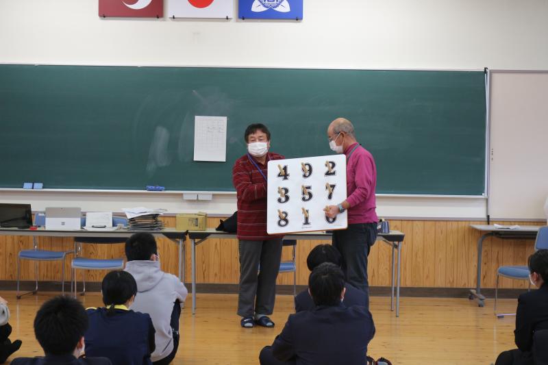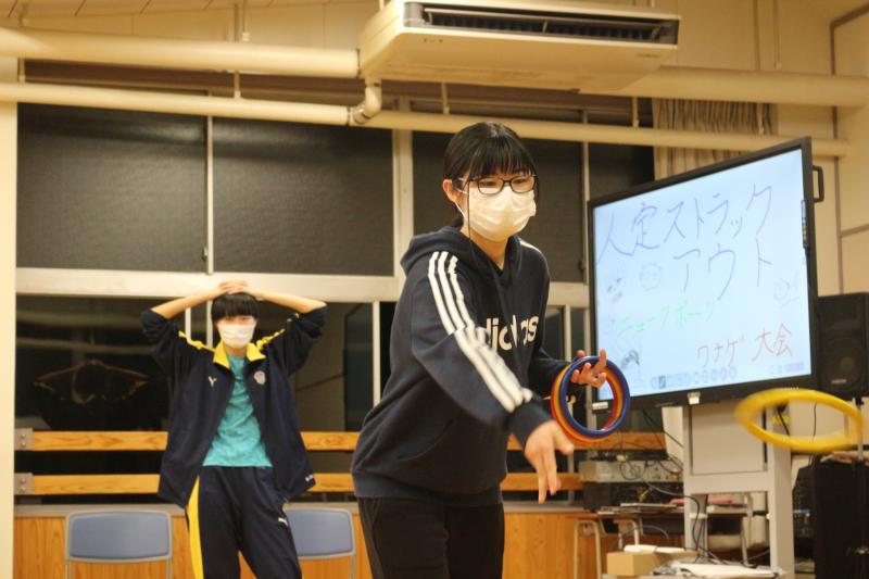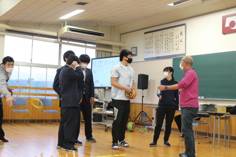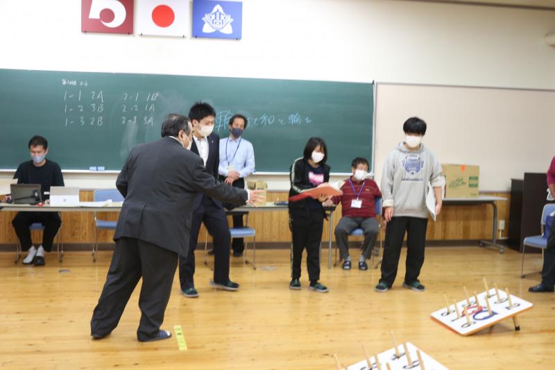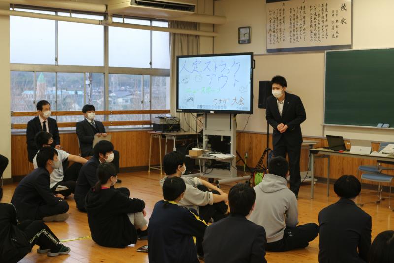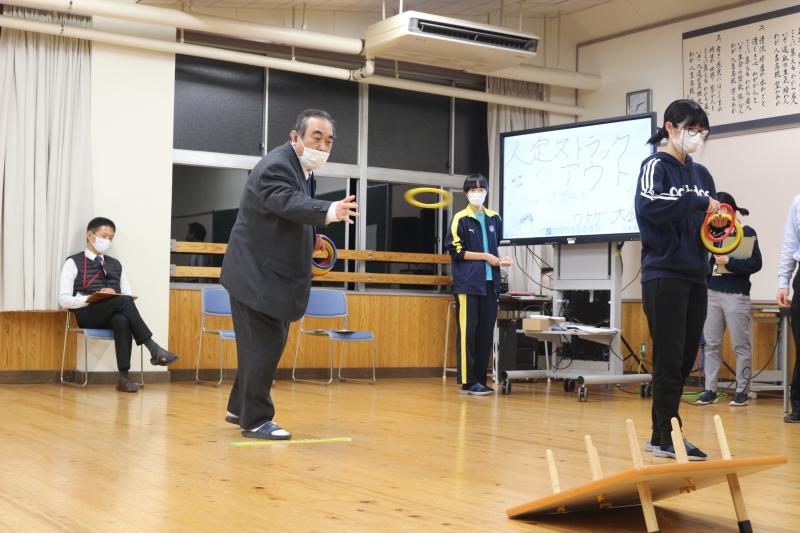今年度最後の生徒会企画です。日本ワナゲ協会多良木支部の瀬﨑哲弘会長、井上義徳副課長を講師としてお招きし、ワナゲ大会を行いました。サブタイトルは、人定ストラックアウトです。地域に広がりつつある競技に、生徒、職員一緒に楽しみ、相互の親睦を図ったり、生涯スポーツや地域そのものへの理解を深めることを目的としました。その目的は、みんなの笑顔を見れば、見事達成されたことがわかります。年度を締めくくるべくすばらしい企画でした。
