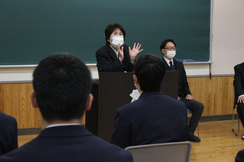 卒業予定生徒に向けて、進路講話を開きました。講師は、就労支援員の豊永康子様です。卒業後に身につけておくべき礼儀やマナーなど、実践を取り入れながら分かりやすく、そして「楽しく」お話しいただきました。生徒だけでなく、職員も、その語り口に魅了され、元気を頂きました。明日からも希望持って、元気に過ごそうと思えるひとときでした。本当にありがとうございました。