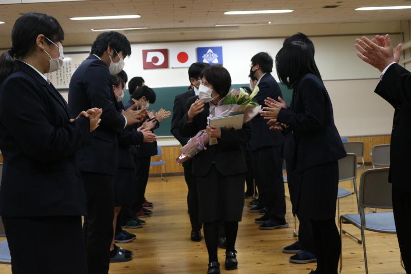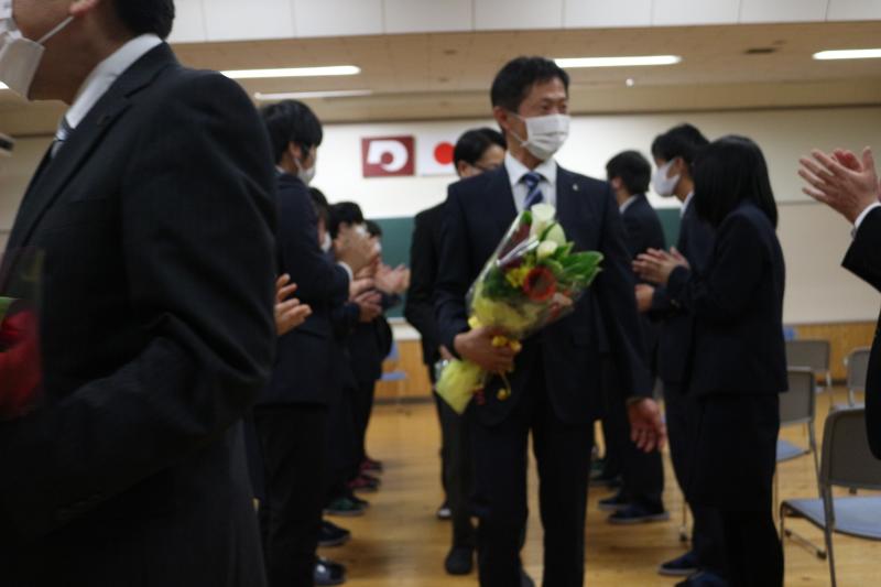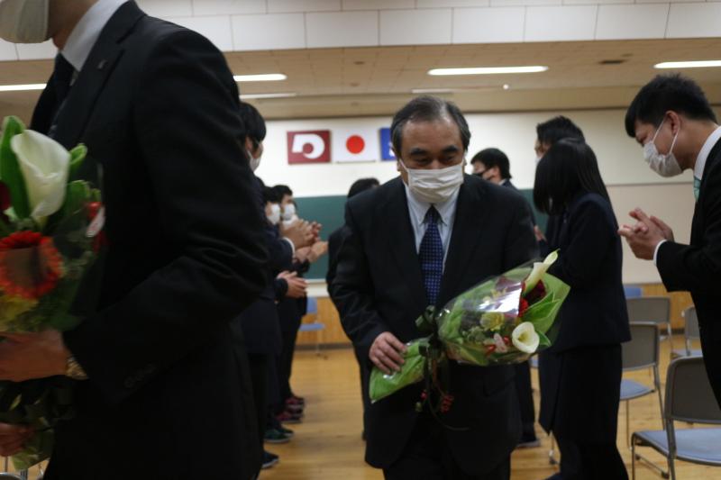 生徒の皆さんとの別れ、先生方との別れ、人定は家族のように過ごしてきたので、本当につらい別れとなりました。転・退任する先生方から、それぞれの熱い思いを語っていただきました。涙を流す生徒もおり、本当に感動的な転・退任式でした。生徒会長が代表挨拶で話してくれたように、それぞれの新たな場所での活躍を祈念して、また再会を楽しみにするという、未来志向の別れにしたいと思いました。