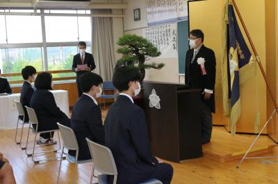 4月9日、入学式が行われ、7名の新入生を迎えました。前田校長先生は式辞で「本校の綱領「礼節」「勤労」「進取」の精神を体現できるよう、自らを磨き、鍛え、高い志をもって本校生活を有意義に過ごし、これからの「未来の創り手」として活躍できる力を身につけてほしい。」と述べられました。新入生を代表して、西さんが宣誓を行いました。式後、新入生保護者の方々の秀麗会(保護者会)入会式が行われました。