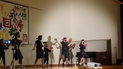 人定祭(今年のテーマ:「永劫回帰~輝け!青春の秋夜~」)を無観客で開催しました。書道パフォーマンスによるオープニング、「展示」・「創作舞台」・「食バザー」の3クラブによる発表や展示、生活体験発表、保健委員会活動報告、生徒会によるフィナーレ等、日頃の学習の成果を十分に発揮し、盛り上がりました。保護者限定でライブ配信も行いました。