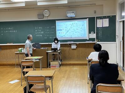 生徒会総務委員会役員改選にあたり立会演説会・投票を実施しました。旧生徒会役員5名の退任挨拶の後、立候補者(会長1名、副会長2名、役員3名)の立会演説会を行い、選挙管理委員による説明に引き続き投票を行いました。会次第の表示や演説・説明ではICT機器を活用しています。投票の結果、全候補者が信任され、翌日から新役員による生徒会がスタートしました。