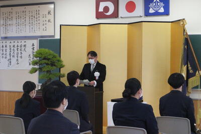 後期表彰式と終業式を行いました。終業式では副校長先生から、「今年度定時制で取り組んだUD観光マップ作成の経験を、これからの地元・地域を担う人材として今後に生かしてほしい」というお話がありました。