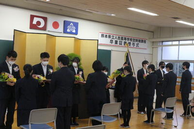 定時制課程第73回卒業証書授与式を行いました。4年生4名、3年生3名の計7名が本校を巣立ち、新たな一歩を踏み出しました。素晴らしい未来の創り手である、卒業生たちのこれからの活躍を祈念します。