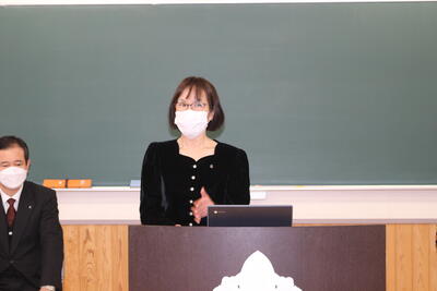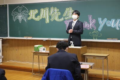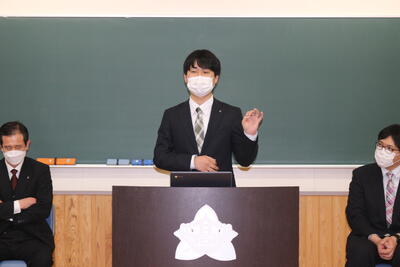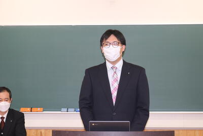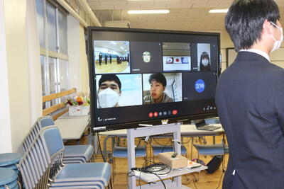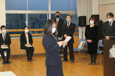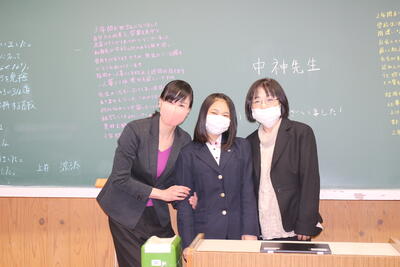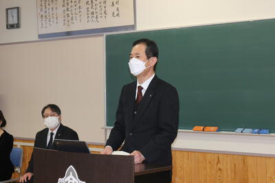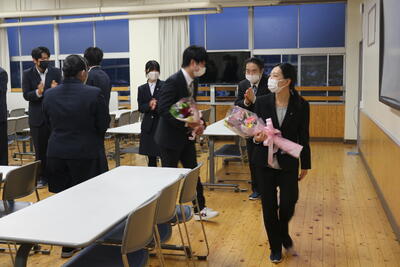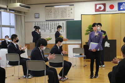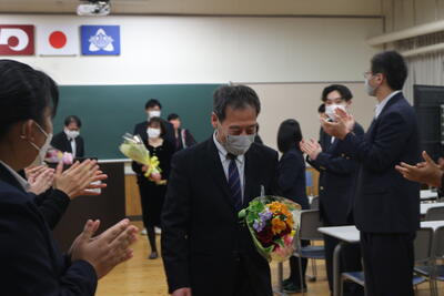 今年度末の異動で定時制では8名の先生方が退任・転任されました。先生方の御挨拶の後、生徒代表として生徒会長の川瀬さんが各先生に向けてメッセージを送りました。会場に来られない卒業生達はリモートで出席しました。先生方、本当にありがとうございました。