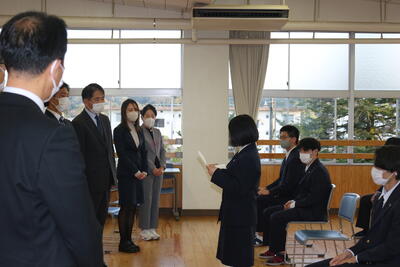 4月8日に新任式を行い、中川校長先生をはじめ、新たに7名の先生方をお迎えしました。生徒を代表して生徒会長の川瀬さんが歓迎を言葉を述べました。その後、3名の転入生の紹介、前期始業式を行いました。最後に担任発表が行われ、1年生から4年生の新しい学年がスタートしました。